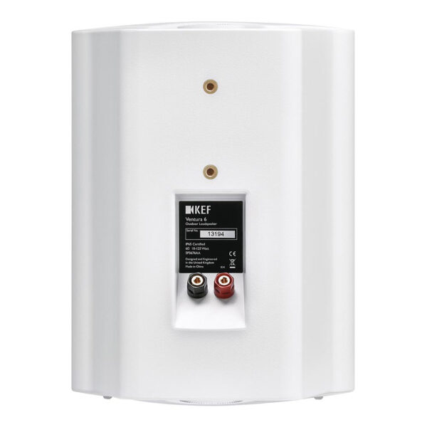 I diffusori 2 Vie 125W da Esterno KEF Ventura 6 sono realizzati con cabinet in ABS sigillato con protezione agli agenti atmosferici e raggi UV, certificati IP65.