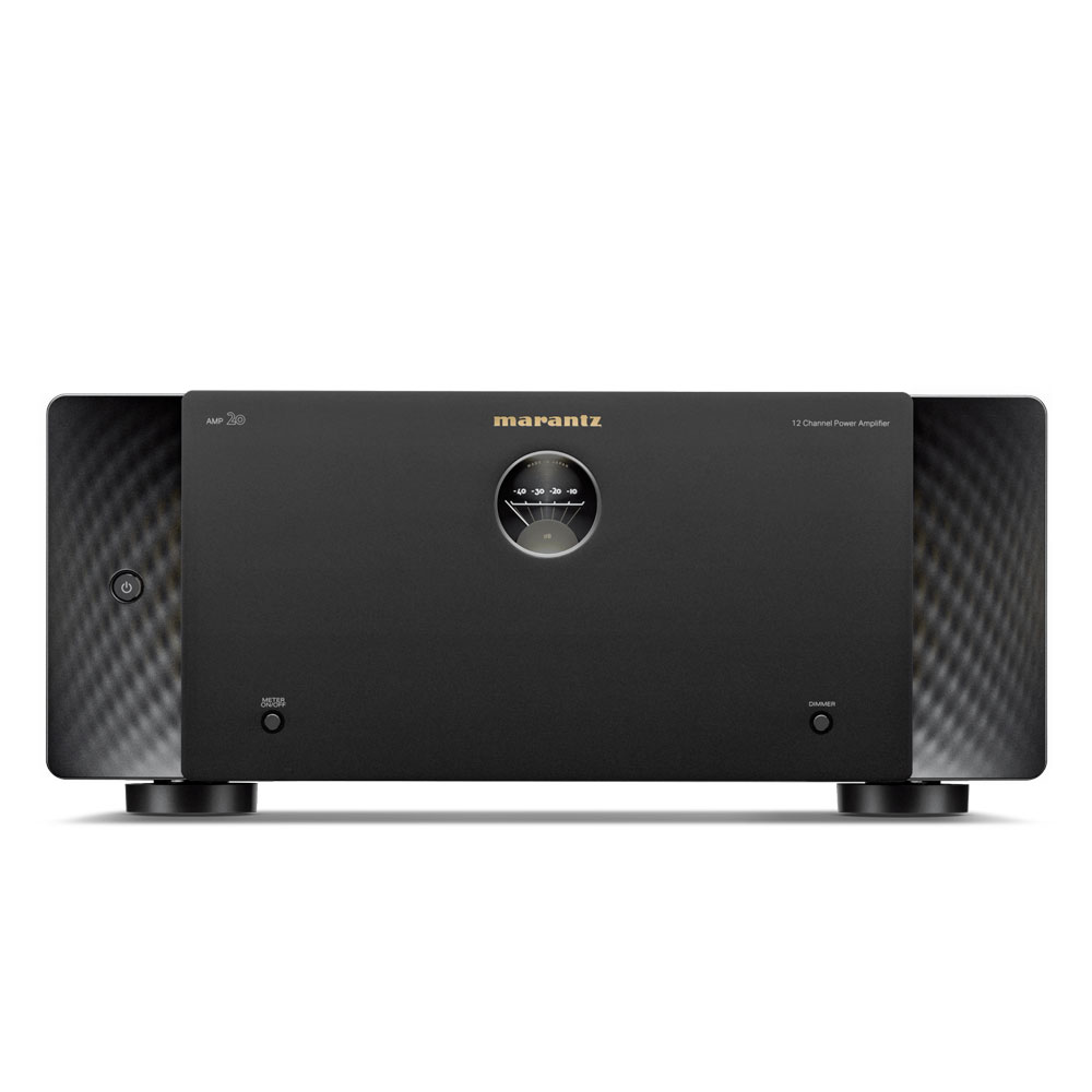 Il Marantz AMP 20 finale multicanale 12 canali di riferimento concentra in un solo chassis dodici canali da 200 W ciascuno (8 Ω, 1 kHz, 0,05% THD, 2 canali pilotati) per alimentare sistemi 3D immersivi con riserva di corrente e silenziosità di fondo.