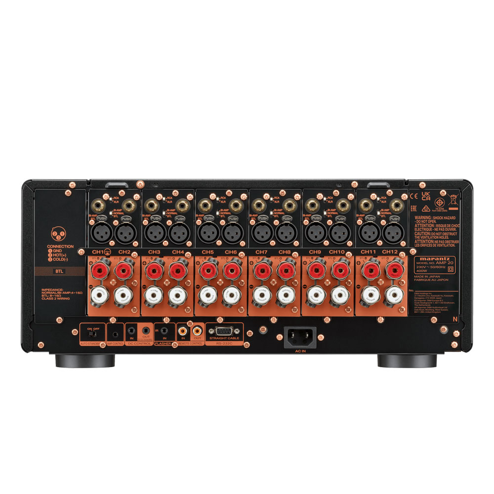 Marantz AMP 20: finale multicanale 12×200 W con ingressi XLR/RCA e modalità BTL/Bi-Amp