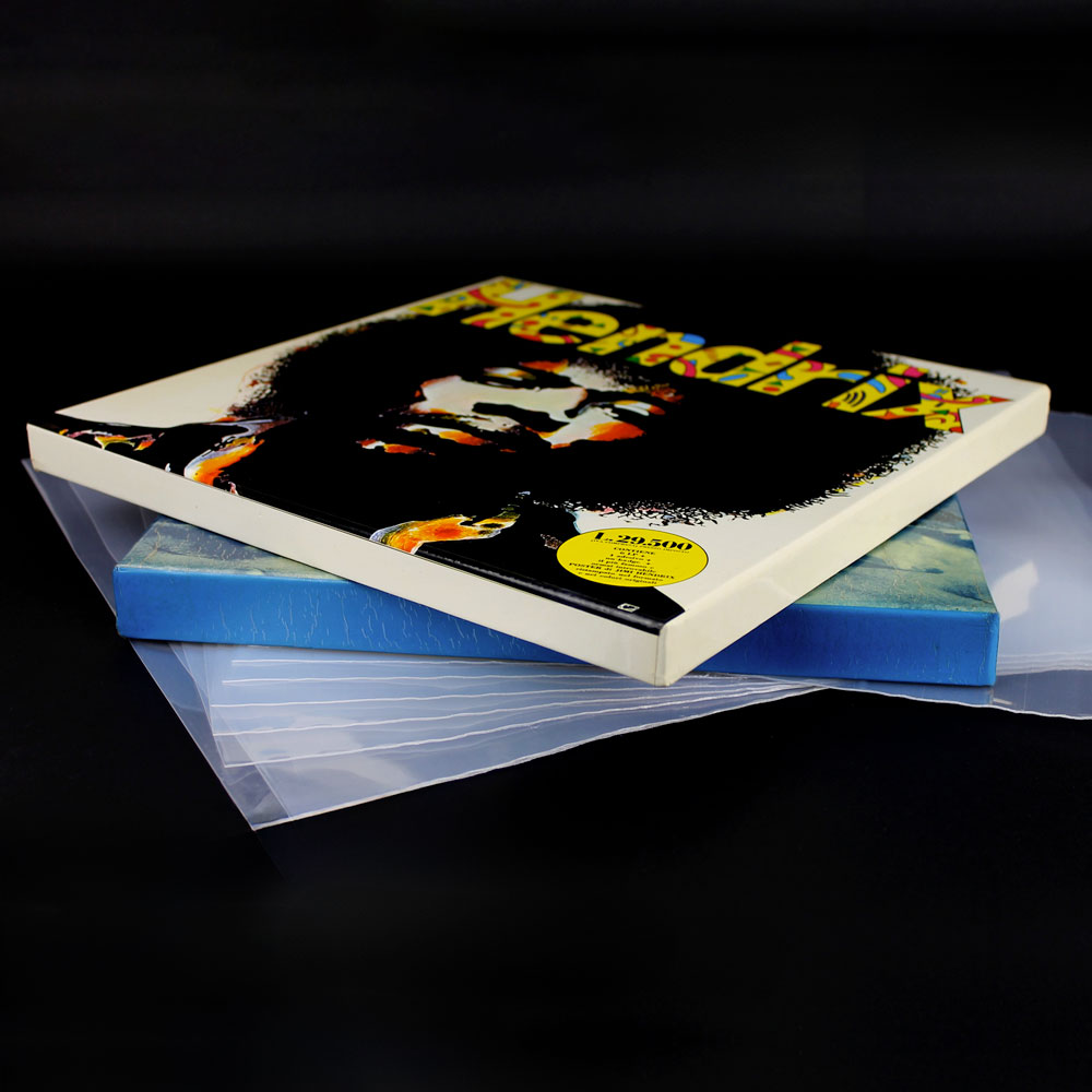 Buste esterne “top di gamma” in polietilene 150 micron, pensate per box set e cofanetti LP extra-spessi. Trasparenza elevata, protezione massima e formato XL.